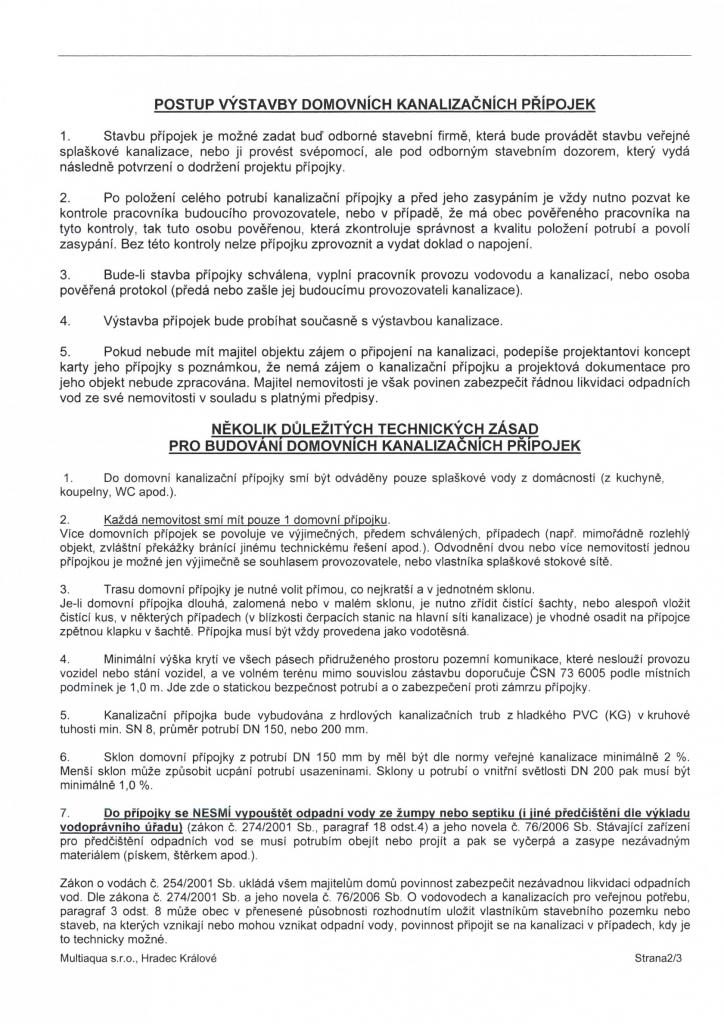 Projekt kanalizačních přípojek zajišťuje společnost Multiaqua s.r.o.