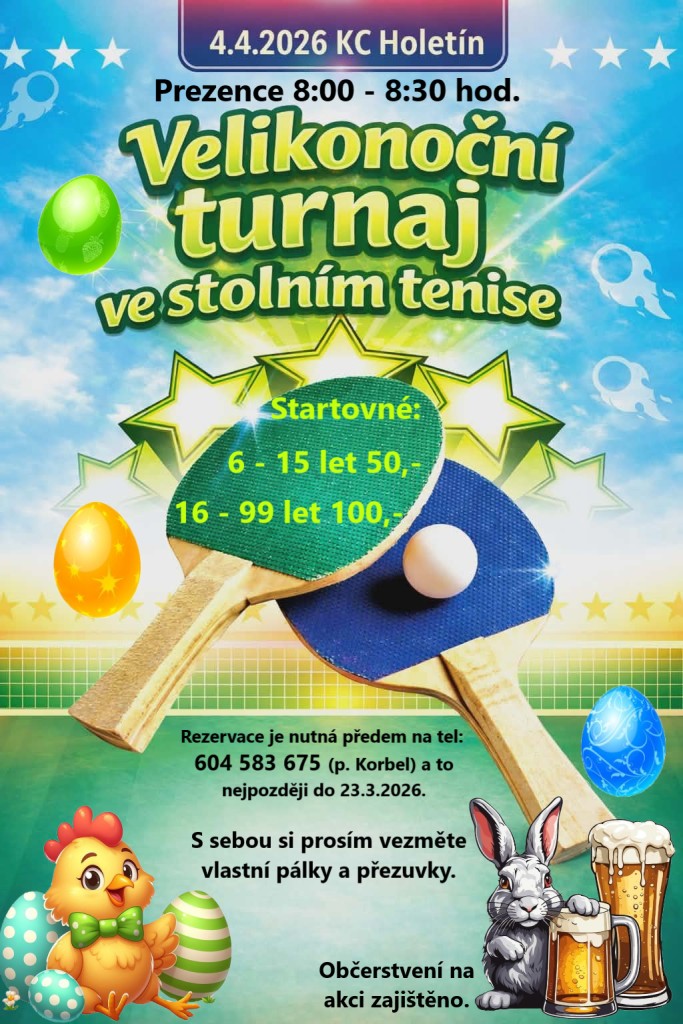 přihlášky do 23.3.2026 na tel: 604 583 675